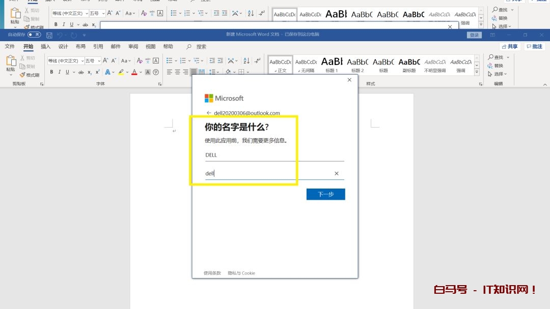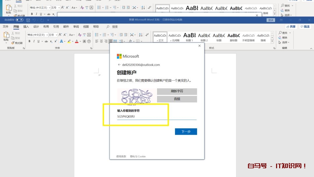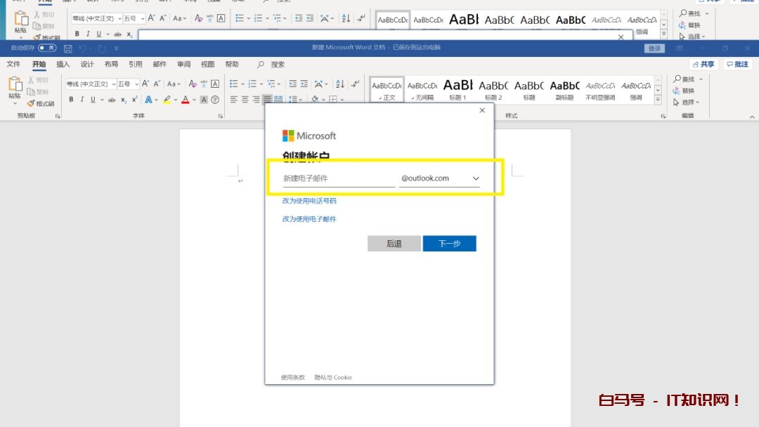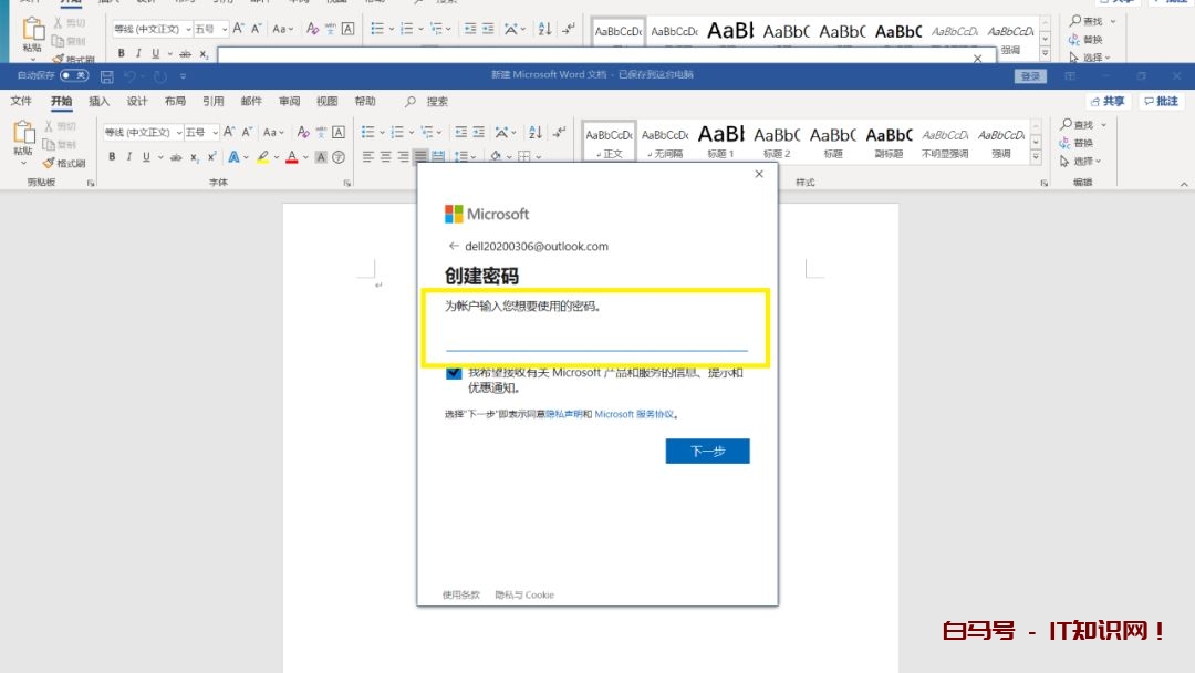 创建账户(****@outlook.com),****代表自己随便输入的名称。点“下一步”