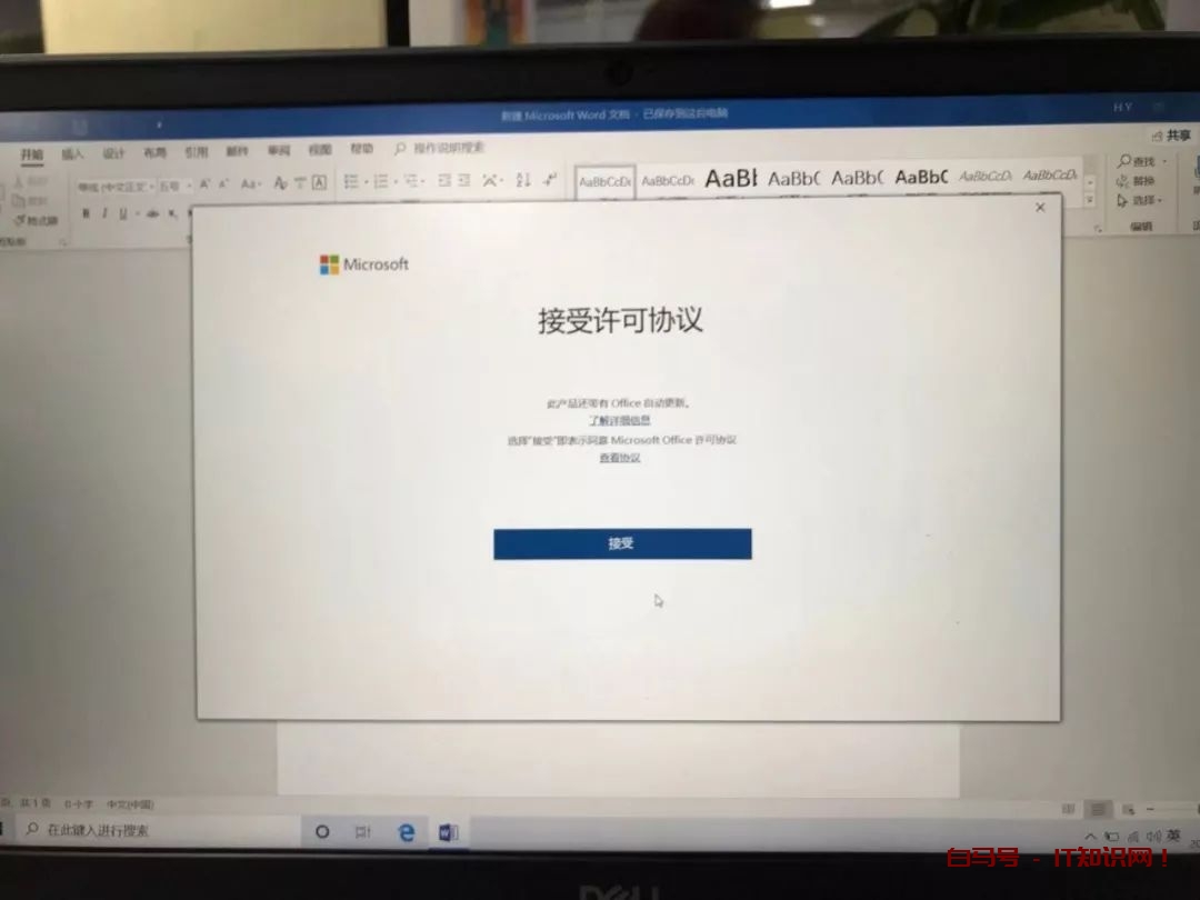 三、完成安装之后,点接受,填写信息。之后可以正常激活office了。