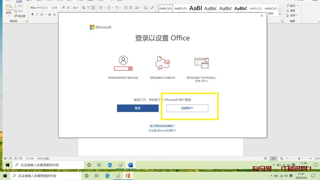 1,激活office一定要选择创建outlook账户,(切记不要选择登陆账户)