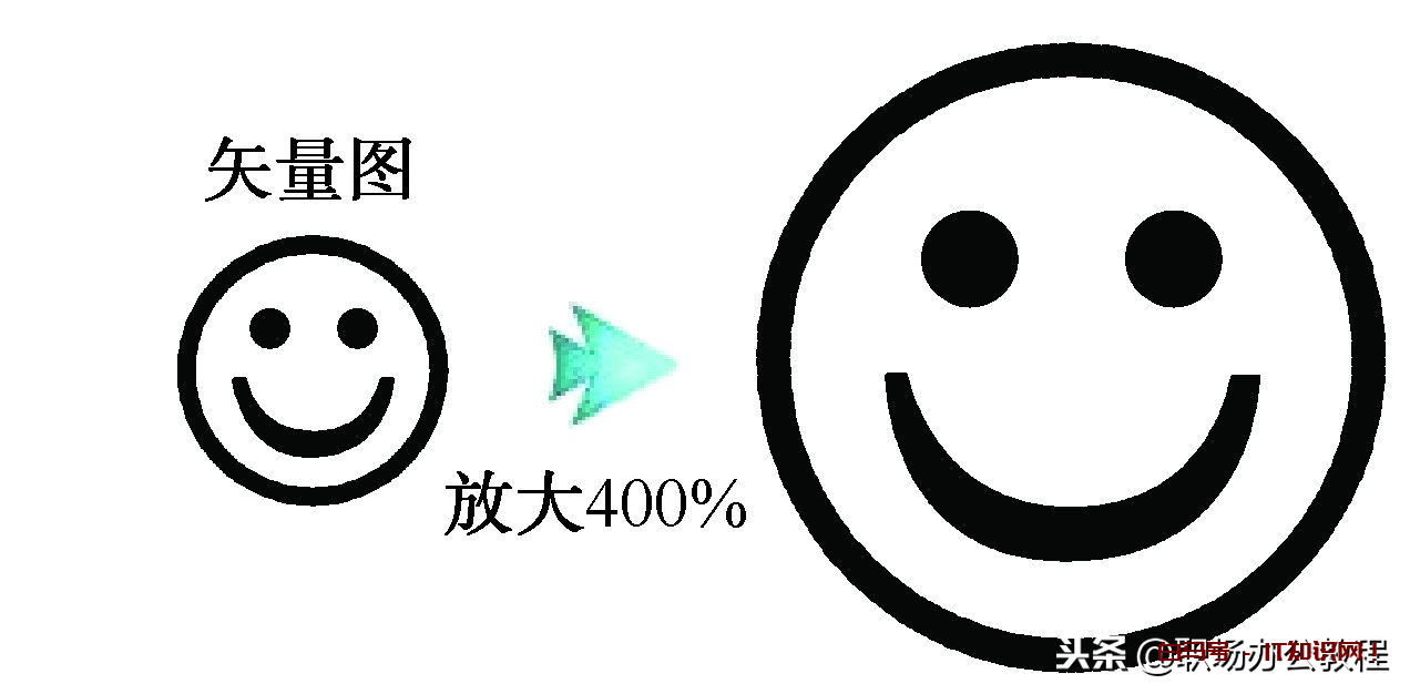 位图图像和矢量图形没有优劣之分,只是用途和特点不同而已。如图所示为点阵图和矢量图的区别。