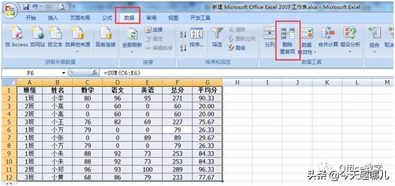 步骤 1 、选中表格,选择菜单 [ 数据 ]-[ 删除重复项 ] ,
