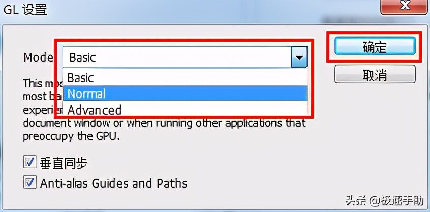 第九步,然后在弹出的GL设置窗口的当中,将【Mode】选项调整为【Basic】,然后点击【确定】按钮。