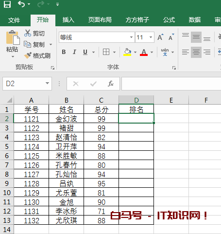 如下图是某班级成绩表,现在我们想要按照成绩大小进行排名。