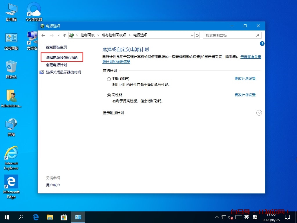 3、点击进入,选择左边的“选择电源按钮的功能”;