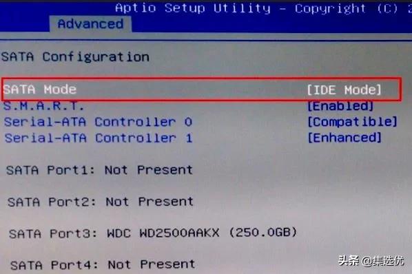 4、在敲击回车后,弹出“SATA Mode”框,选择“AHCI Mode”或者“IDE Mode”。如图所示: