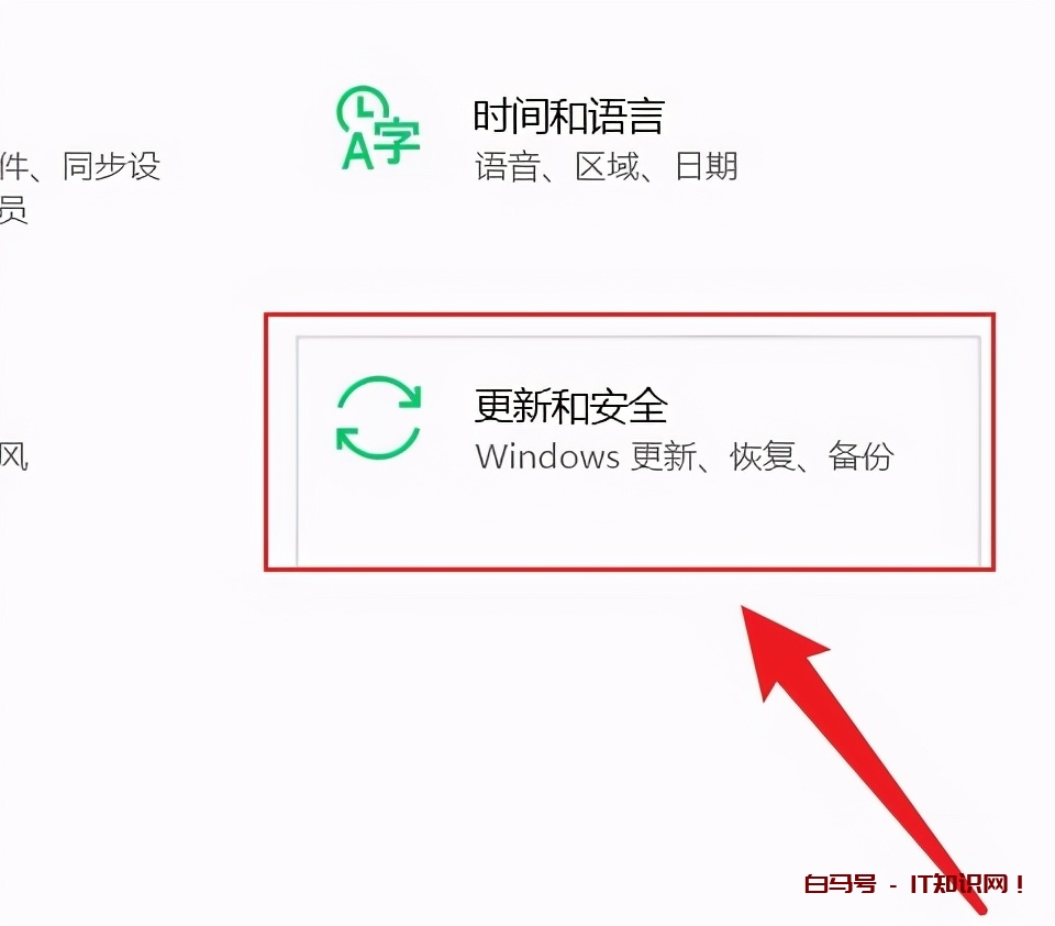 2、在设置页面中找到并点击“更新和安全”选项。