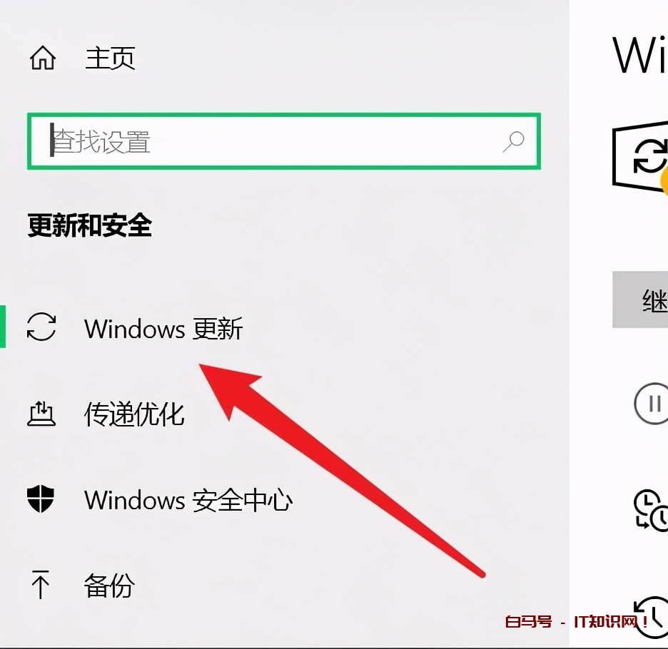 3、接着点击左侧菜单栏的“Windows更新”。