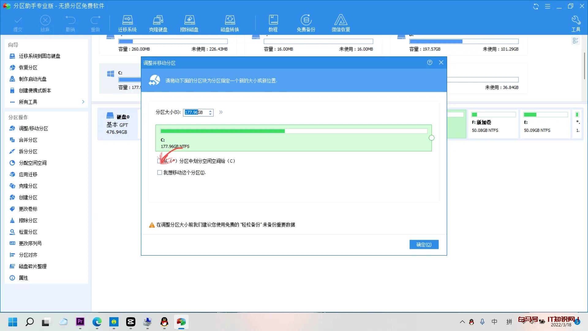 3.在进行C盘扩容时,被扩容的那个盘必须是空的。)