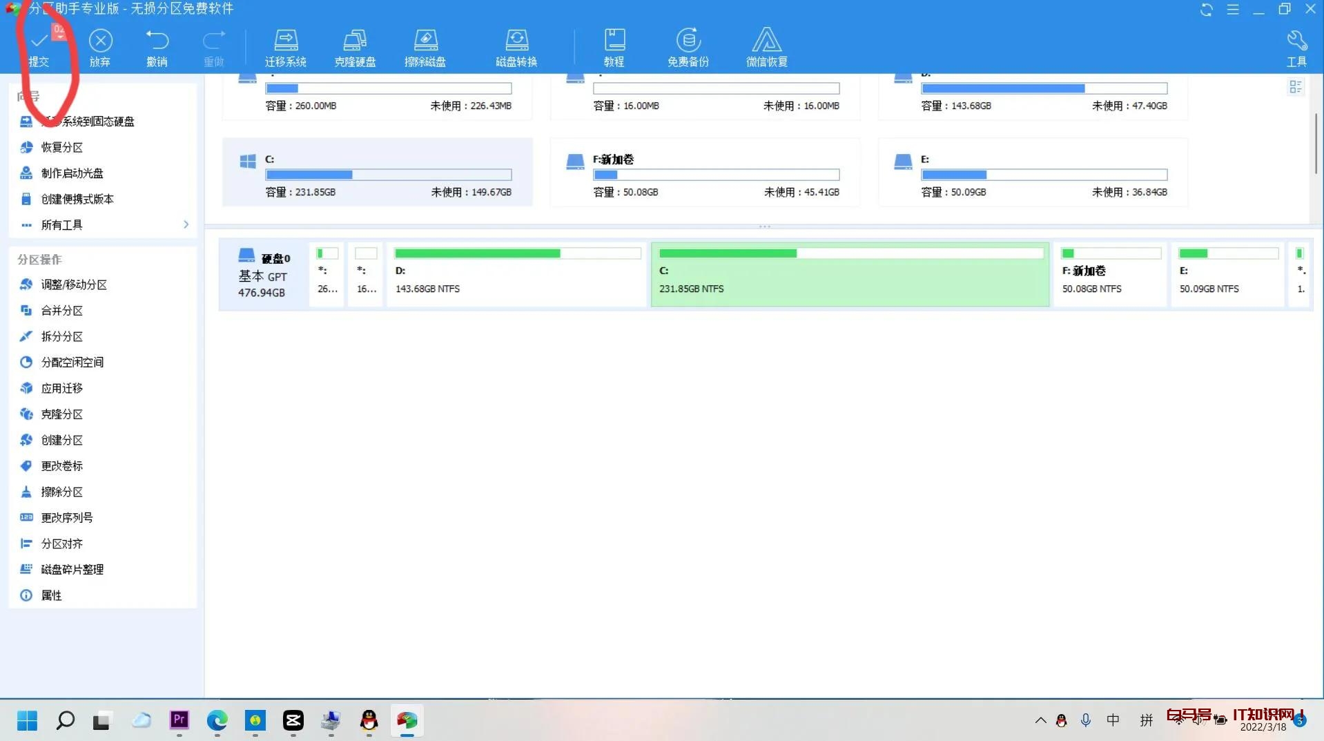 方法二:用 电脑软件分区助手 进行分盘(强烈推荐此方法,并且此软件免费好用)