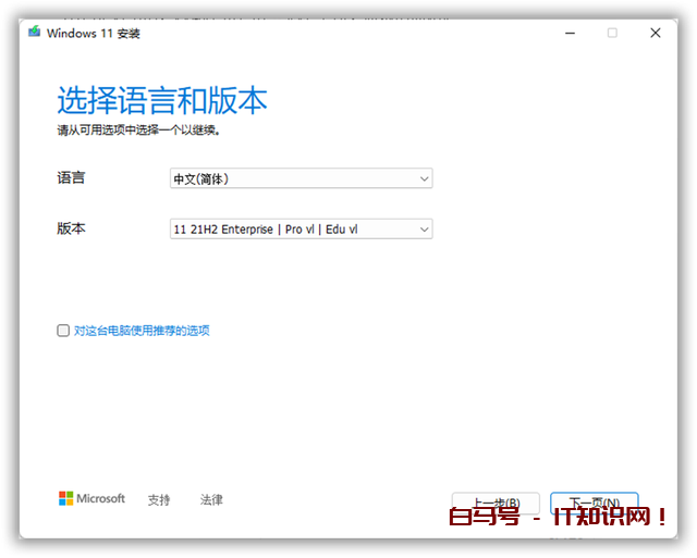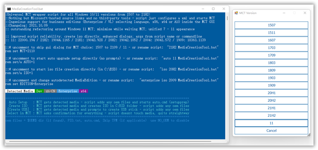 选择“Select in MCT”,将自动启动微软原版的MCT,脚本则自动退出。这个方式和直接运行MCT没有区别。可以自行选择语言、版本等。