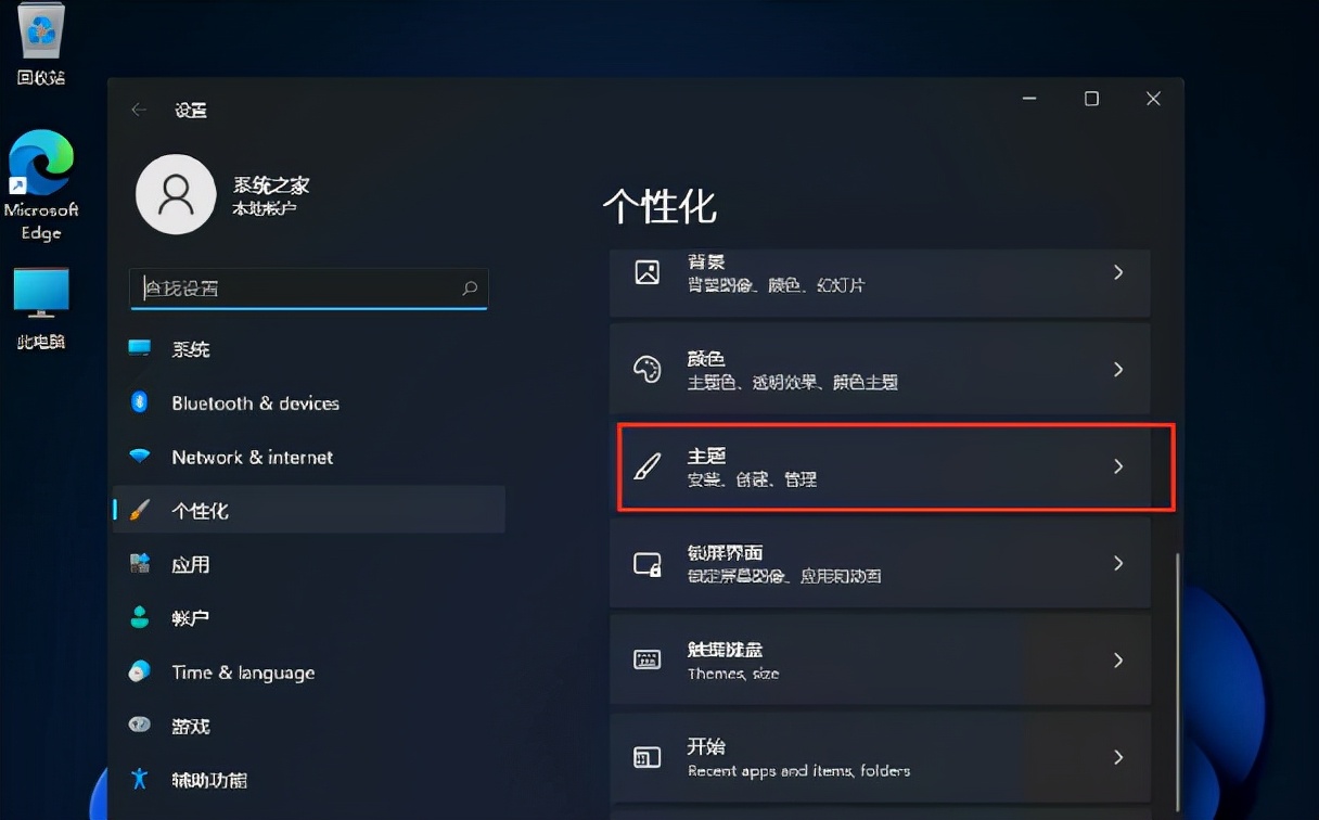 2.在进入的个性化设置的页面中,选择【主题】设置;
