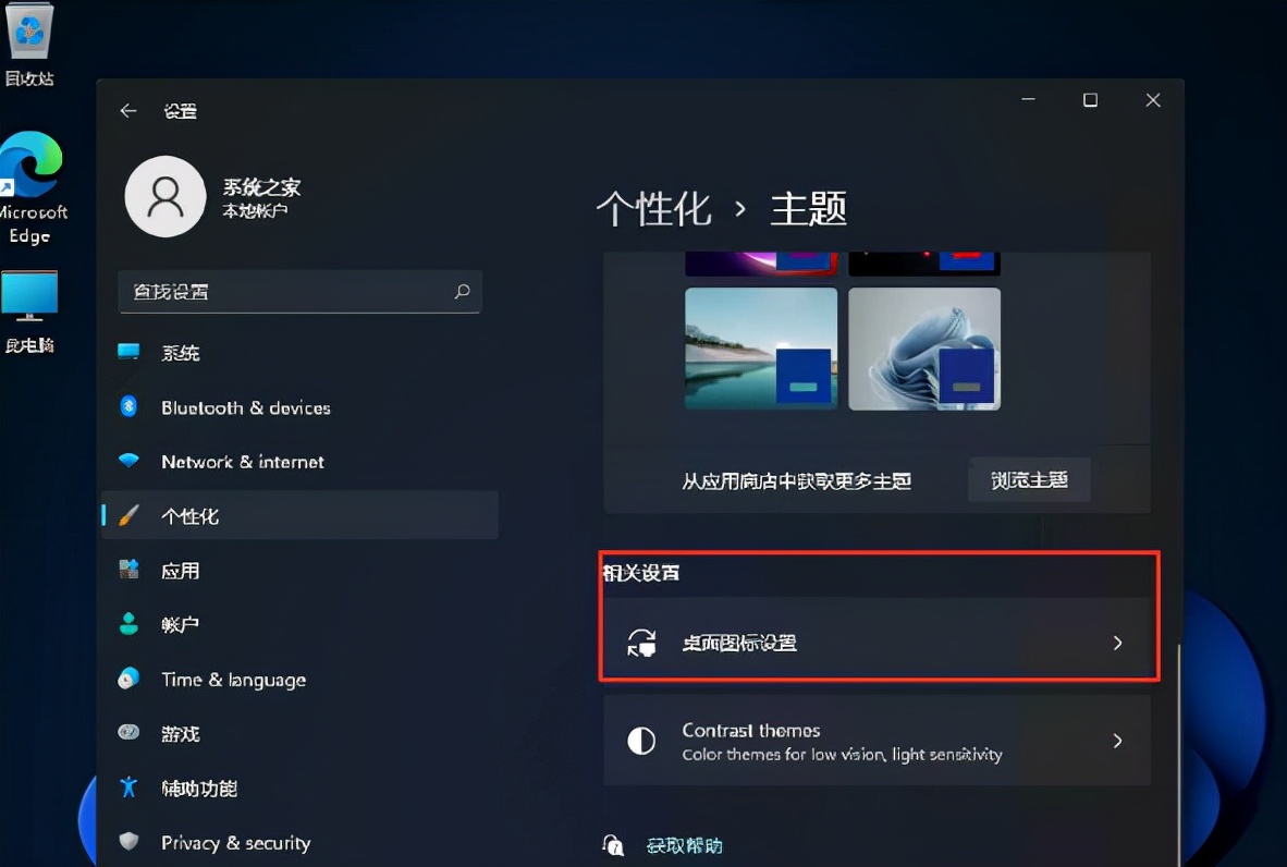 3.进入主题设置,我们在页面中找到并点击【桌面图标设置】选项;