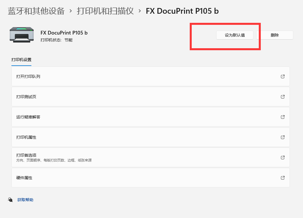 4、进入打印机页面后,点击设置为默认值,如下图所示: