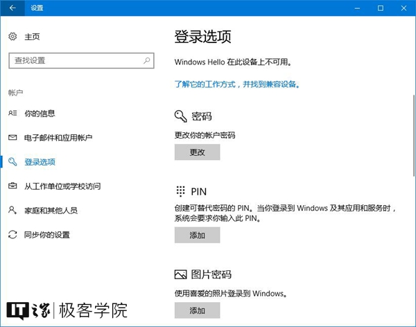 依次进入设置-账户-登录选项,在PIN设置段点击添加按钮;