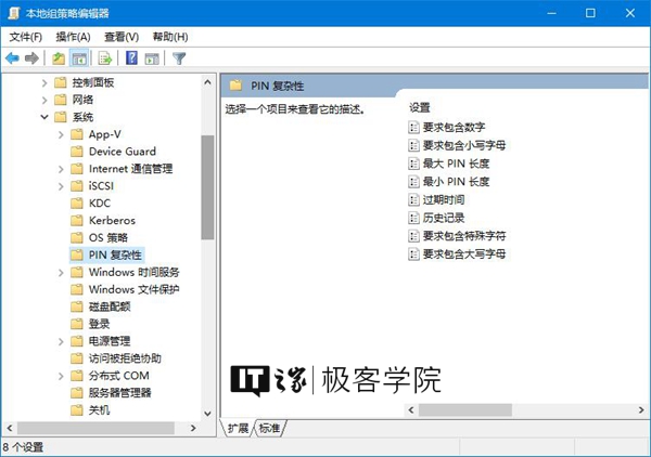 除此之外,我们还可以在组策略编辑器中看到很多其他有关PIN码复杂程度的设置项,比如要求包含数字、要求包含小写字母、过期时间、历史记录、要求包含特殊字符、要求包含大写字母。这些设置项的设置方式与最小PIN长度和最大PIN长度的设置方式大同小异,感兴趣的同学可以自行研究。