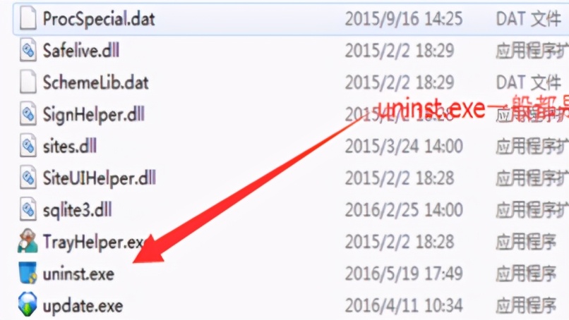 4、进入后,将文件夹放到最下面的部分,找到底部的程序:uninst.exe双击该程序,它会自动弹出卸载弹出窗口。