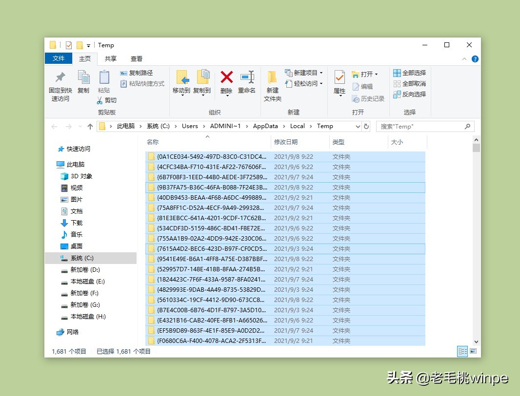 第二步:此时,你就会看到C盘的垃圾,这时全部选中,或按下快捷键【Ctrl+A】,最后按下Delet按键即可把C盘垃圾删除掉了。