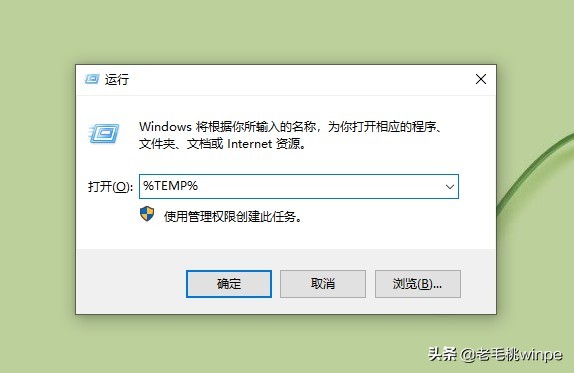 第一步:同时按下【win+r】组合快捷键,打开运行窗口后,在框内输入代码【%TEMP%】,回车。