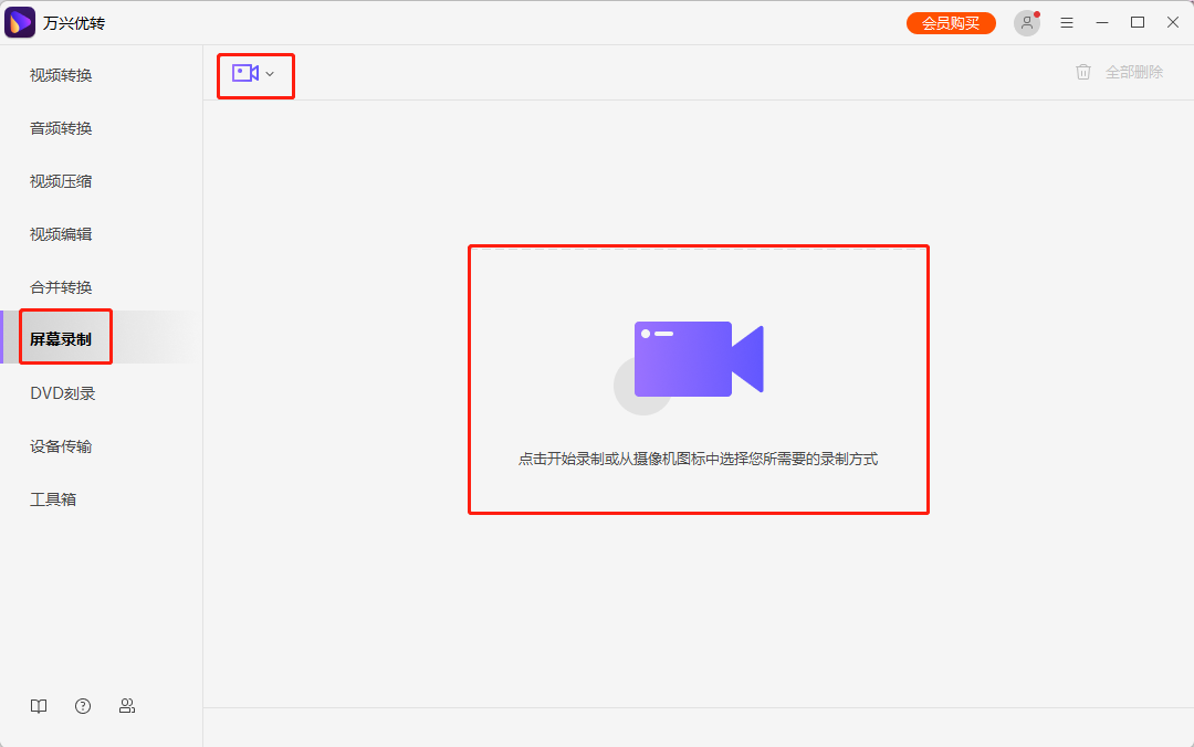 电脑打开万兴优转,在主界面的左侧点击屏幕录制功能板块。点击左上角录制下拉菜单选择桌面录制。或者点击中间录制图标直接进入桌面录制。