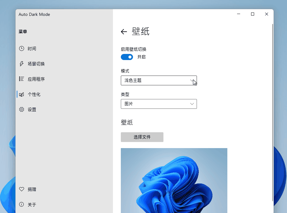 正如你所看到的,AutoDarkMode除了定时换壁纸外,还能同步修改Windows的主题风格,有效解决了目前Windows主题全靠手换的尴尬。尽管壁纸效果不及前款炫酷,可不错的实用性还是赢得了很多办公一族的喜爱!