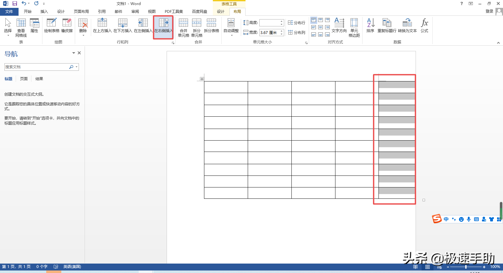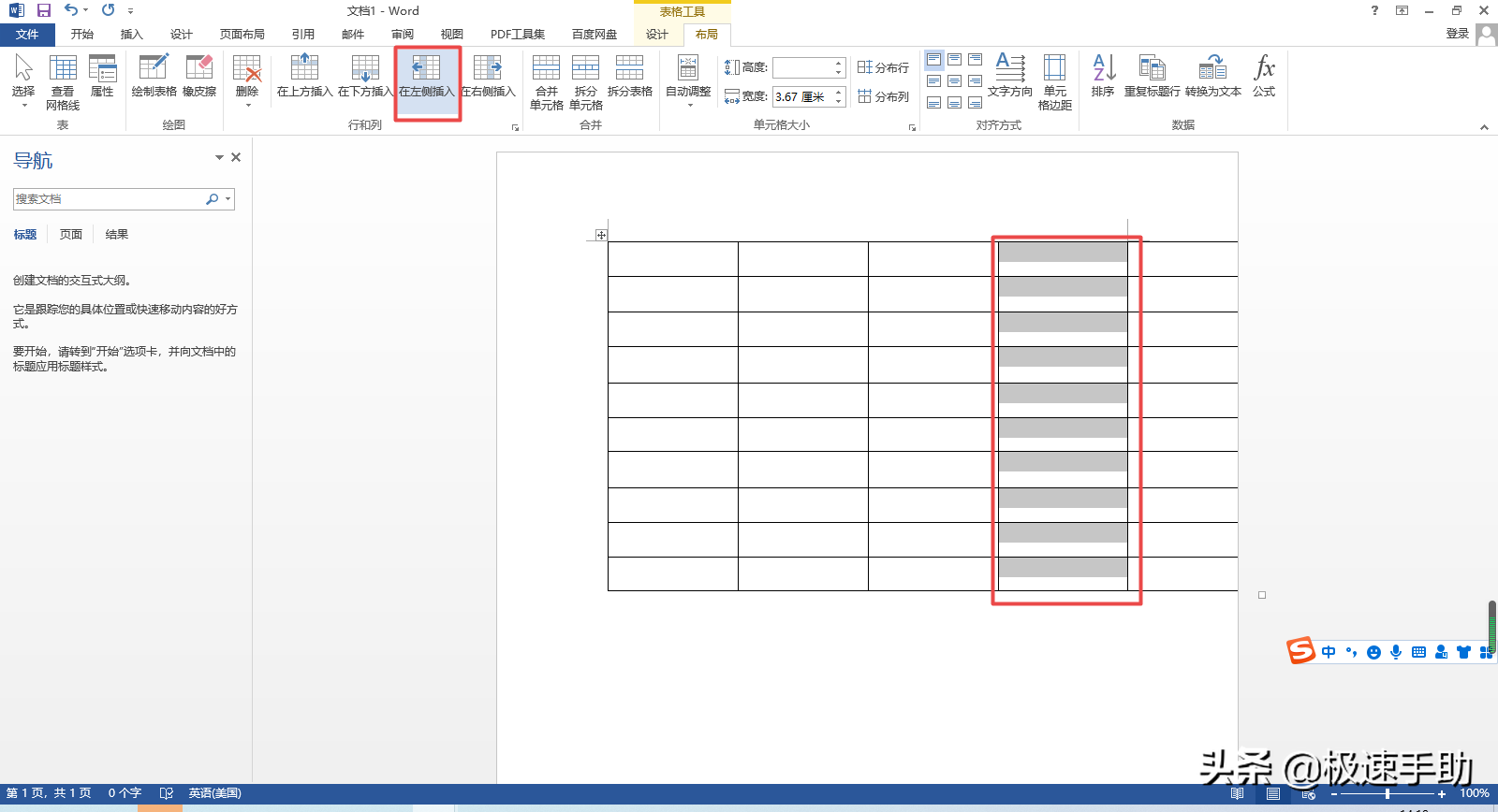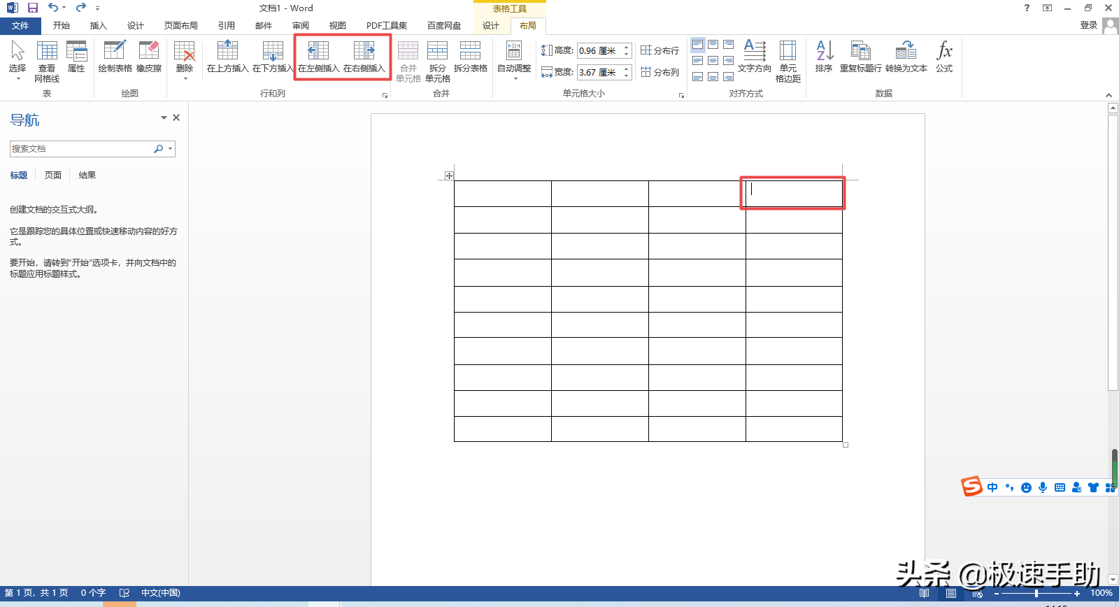 第五步,接着再选择想要插入列的单元格,然后在布局的选项卡中找到【在左侧插入】和【在右侧插入】的选项。