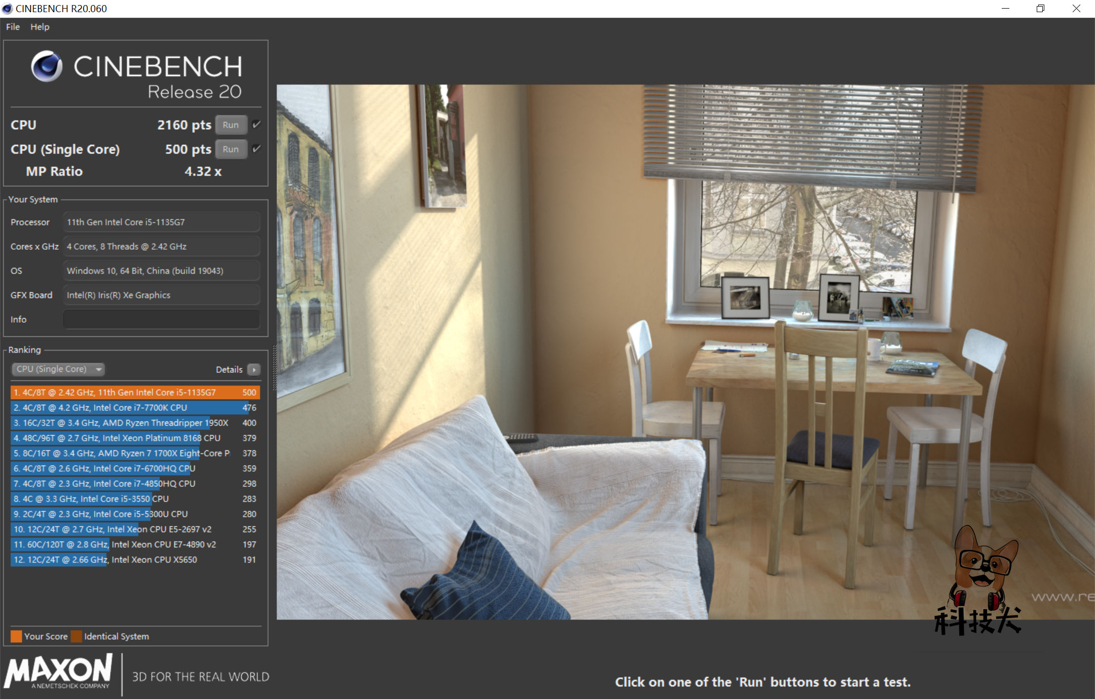 Cinebench R15 & R20可以较全面地展现CPU单核多核的渲染能力,realme Book搭载的英英特尔®酷睿™ i5-1135G7处理器得分分别为R15单核成绩为192分,多核成绩为922分;R20单核成绩为500分,多核成绩为2160分,该成绩表明英特尔®酷睿™ i5-1135G7处理器具备很强的渲染能力。