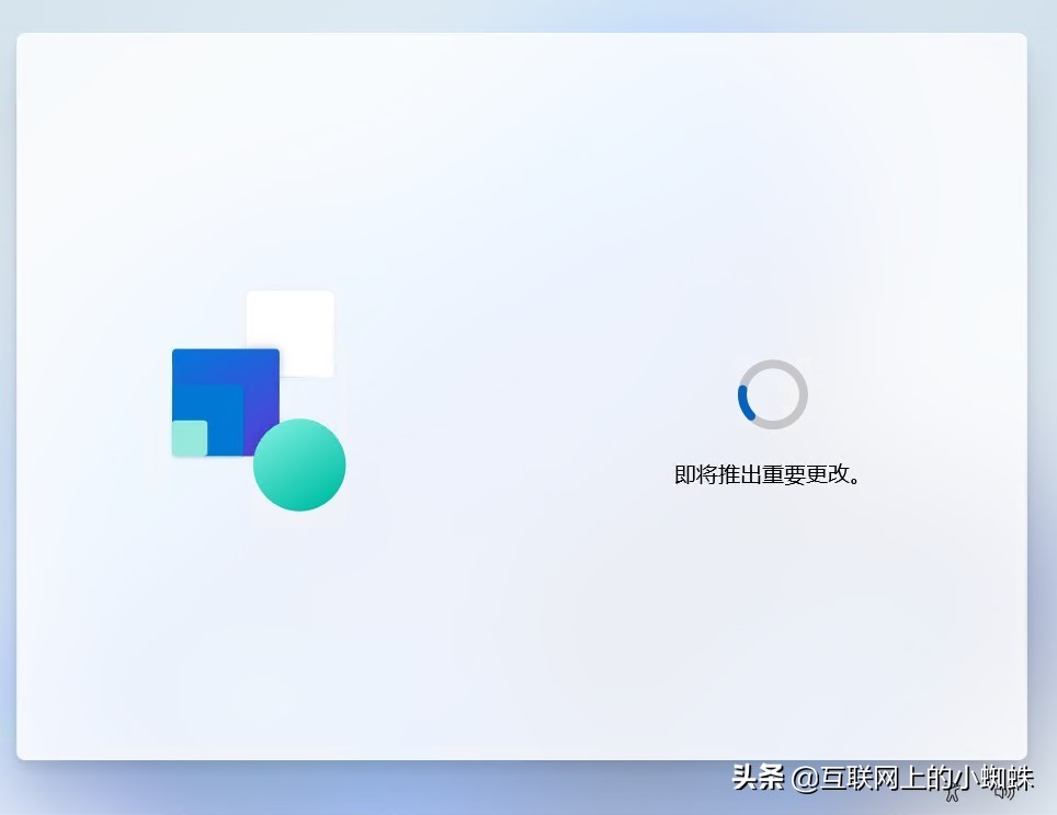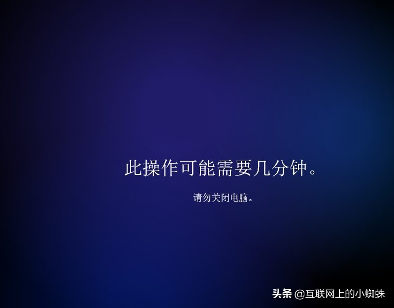 此时出现重启电脑,接下来进入电脑后出现下面的画面,需要几分钟的时间。耐心等待。