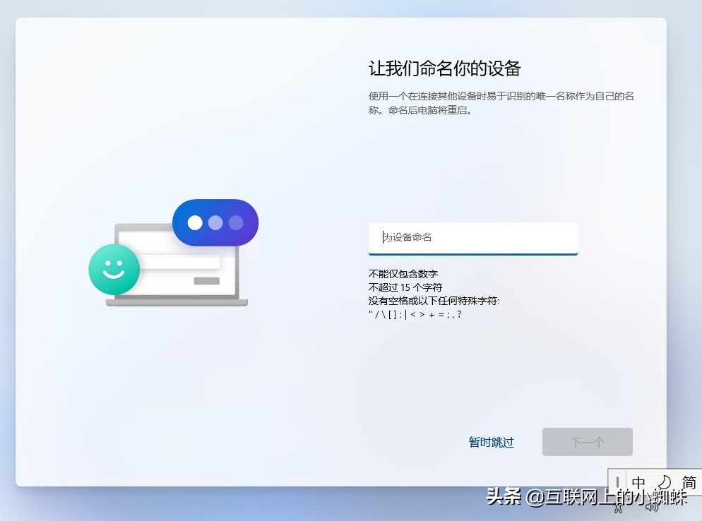 给你安装Windows 11操作系统的电脑命名,完成后点击【下一个】继续。