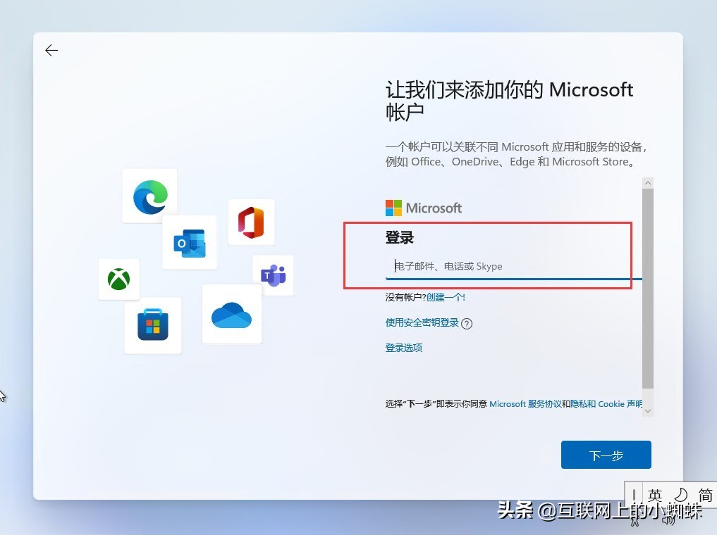 接下来输入你拥有的微软帐户,如果没有可以到微软的官方网站申请一个。相关的申请方法可以参看我之前发表的相关文档。