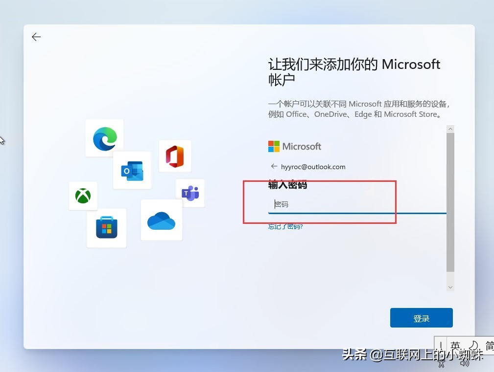 输入上面微软帐号的对应密码。输入后点击【登录】