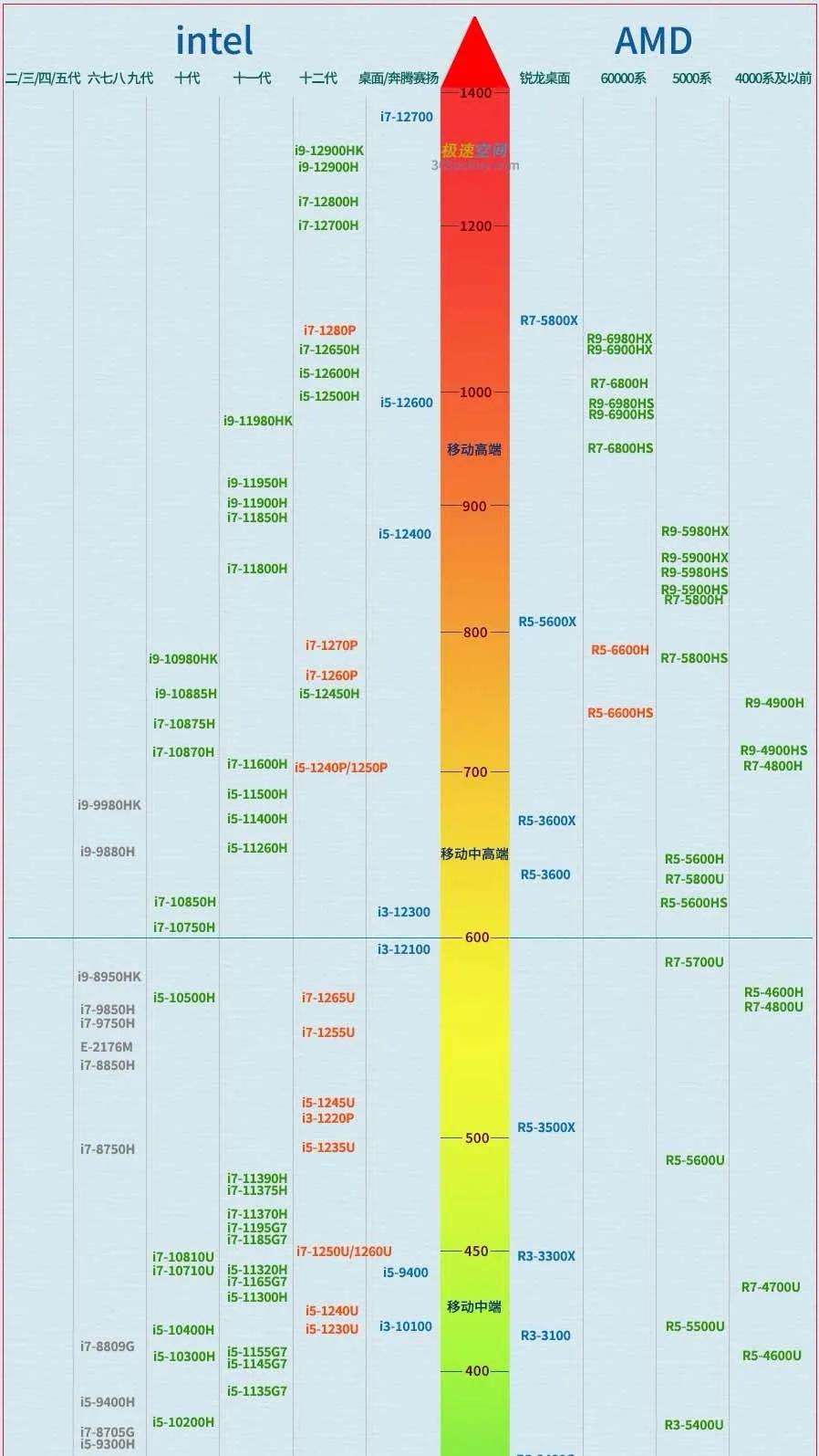 cpu性能天梯图笔记本2022(5月最新处理器天梯性能对比) 微风 • 2022-05-19 22:41 • 投稿 这次intel没有挤牙膏。 12代移动端cpu非常强劲,和桌面段差距越来越小。 12500h已超过上一代i7-11800h,性价比非常高。 12500h大概在12450h和12700h之间。 声明:所有白马号原创内容,未经允许禁止任何网站及个人转载、采集等一切非法引用。本站已启用原创保护,有法律保护作用,否则白马号保留一切追究的权利。发布者:微风,转转请注明出处:https://www.bmhysw.com/article/22729.html 赞 (0) 打赏 微信扫一扫 支付宝扫一扫 微风 0 生成海报 相关推荐 投稿 Win10系统如何更改小娜的位置? Win10系统如何更改小娜的位置? 介绍 步骤 小贴士 介绍 小娜是Win10系统中的语音助手,可以帮助用户完成各种任务,如搜索、打开应用程序等。有时候,小娜的位置可能会挡住了屏幕上的重要信息,那么如何更改小娜的位置呢?下面将详细介绍。 步骤 在电脑桌面上,单击鼠标右键,选择“个性化”。 在弹出的窗口中,选择“任务栏”。 在任务栏设置中,找到“小娜”并单击它… 2023-08-27 000 投稿 Win10按F8进不了安全模式怎么办?Win10进入安全模式方法详解 大纲 Win10按F8进不了安全模式的原因 Win10进入安全模式的方法 其他进入Win10安全模式的方法 如何在安全模式下修复Win10问题 Win10按F8进不了安全模式怎么办?Win10进入安全模式方法详解 Win10按F8进不了安全模式的原因 在Win10中,按F8键进入安全模式已经无效了。这是因为在Win8及之后的版本中,微软为了加快启动速度,将启… 2023-05-12 000 投稿 设备管理器没有DVD光驱?解决方法揭秘,让光驱重新出现 设备管理器没有DVD光驱?解决方法揭秘,让光驱重新出现 为什么DVD光驱会消失? 检查设备管理器 更新驱动程序 编辑注册表 重启电脑 为什么DVD光驱会消失? 在Windows 10系统中,DVD光驱可能会在某些情况下消失,例如: 系统更新后 驱动程序出现问题 硬件故障 电脑病毒感染 如果您的DVD光驱消失了,不要惊慌,下面是一些解决方法。 检查设备管理器 … 2023-06-03 000 投稿 C盘有二百多G分不出来的解决方法介绍 解决C盘有二百多G分不出来的方法 使用磁盘清理工具 清理系统文件 卸载不必要的程序 重新分区 使用磁盘清理工具 磁盘清理工具是Windows系统自带的工具,可以帮助我们删除不必要的文件,释放磁盘空间。具体步骤如下: 打开“此电脑” 右键点击C盘,选择“属性” 在“常规”选项卡中,点击“磁盘清理” 系统会自动扫描磁盘,等待几分钟后,会出现可以删除的文件列表 勾… 2023-06-23 000 maven环境变量配置不成功(正确安装MAVEN与环境变量配置教程) maven下载 进入apache官网下载maven压缩包 下载对应的版本,并解压到非中文目录。 环境变量配置 添加MAVEN_HOME 打开Path并添加 %MAVEN_HOME%\bin 修改配置打开%MAVEN_HOME%\conf文件夹下的settings.xml 配置本地仓库地址 <localRepository>D:/project/m… 2022-07-12 • 投稿 000