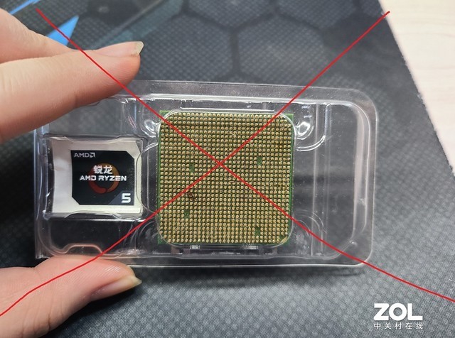 首先是装CPU的时候,没错,就是将CPU装载盖子里时,因为AMD的盖子其实有正反两面的区别,而且两面都可以将CPU装进去。但如果你装反那么这颗处理器的针脚四周必然会弯曲,所以务必慎重,至于笔者为什么这么肯定,那当然是受到了不少教训 。