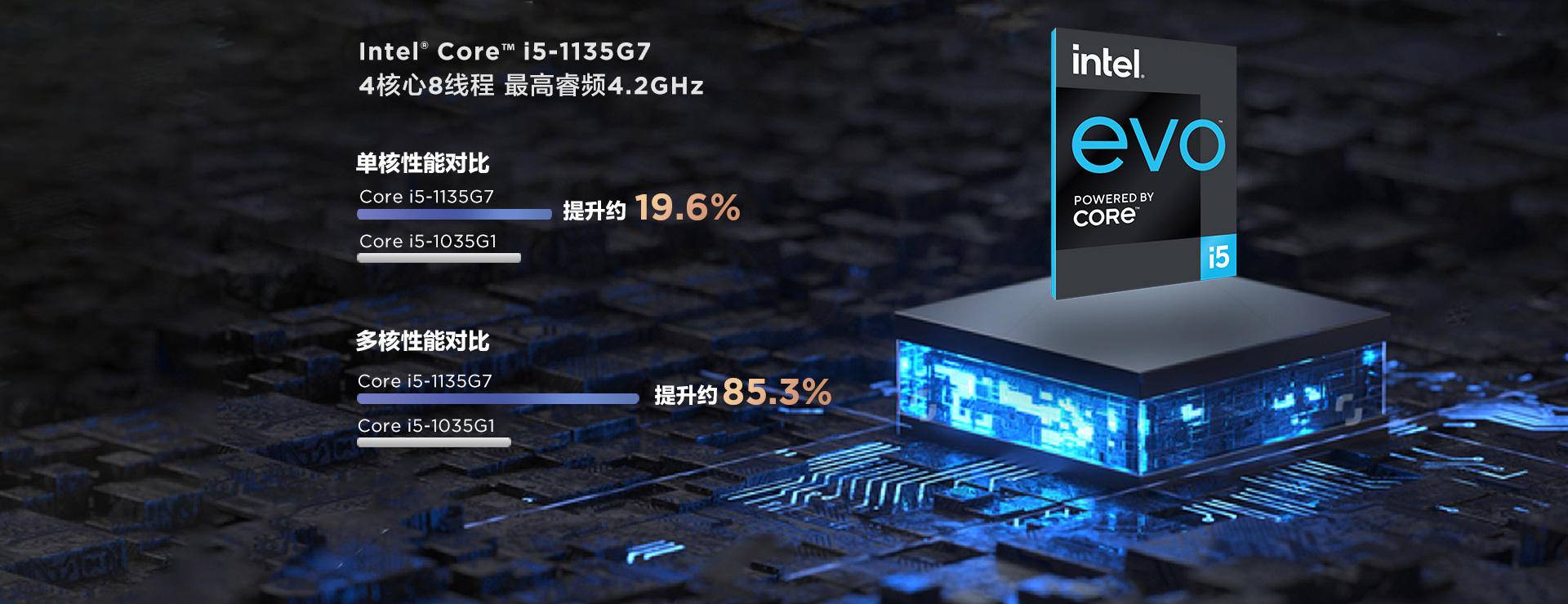 最后在“炫”上,高扩展性的 Xe 图形架构与 CPU 完美融合,图形性能提升近 87%,拥有逼真色彩和丰富细节。另外超轻薄外观与强劲性能完美结合。