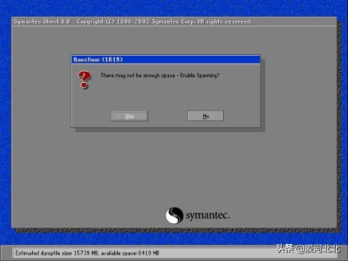 图十 空间不够的提示(是否将镜像文件存储在多个分区上)