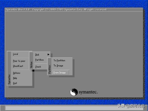 启动Ghost之后,选择Local->Partion对分区进行操作。