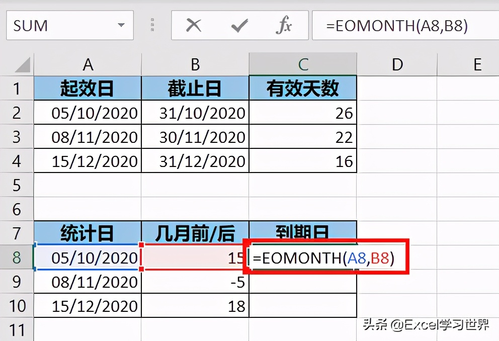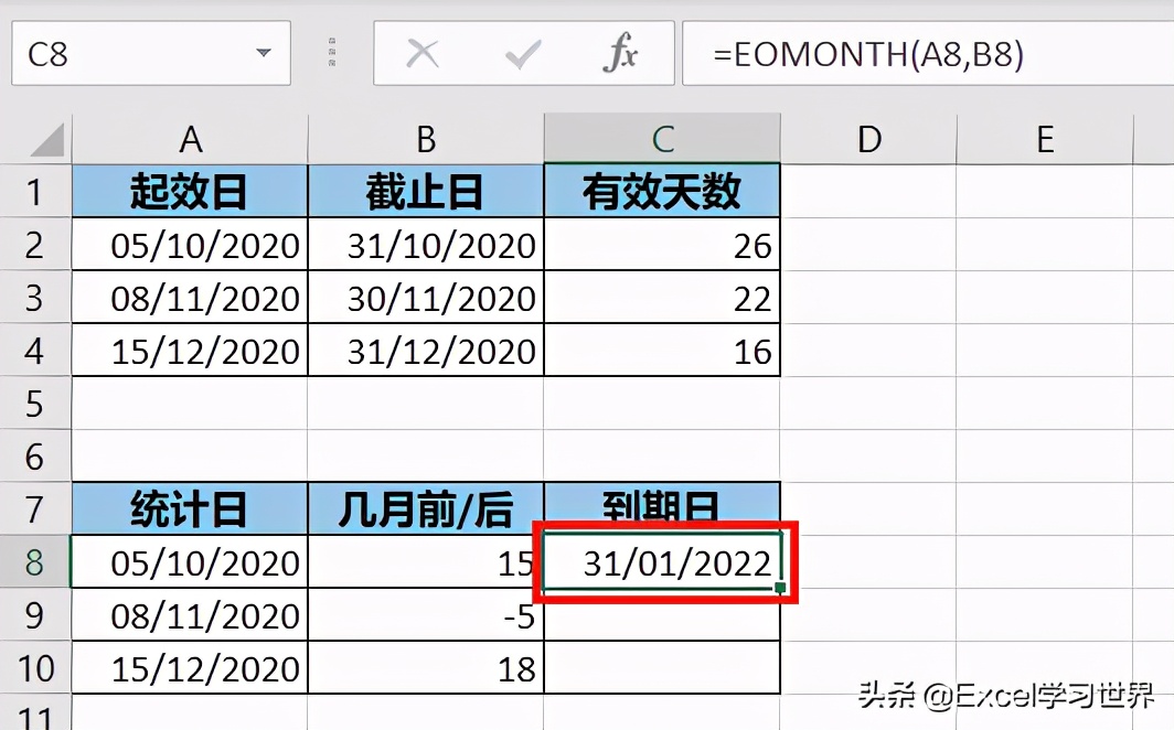 eomonth 就是 end of month 的简写,因此该函数顾名思义,就是求月最后一天的日期。
