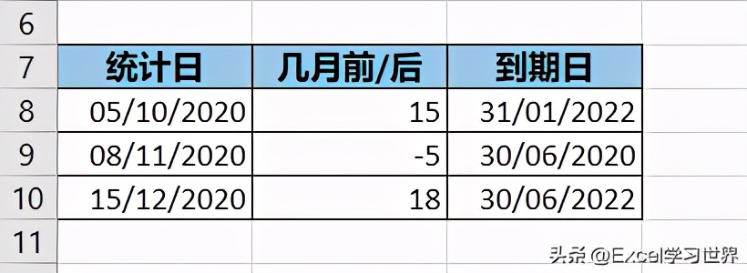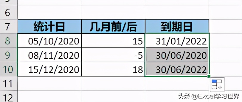 这批券有的将在几个月后到期,有的已经过期,如 B 列所示,默认都在每个月的最后一天到期。