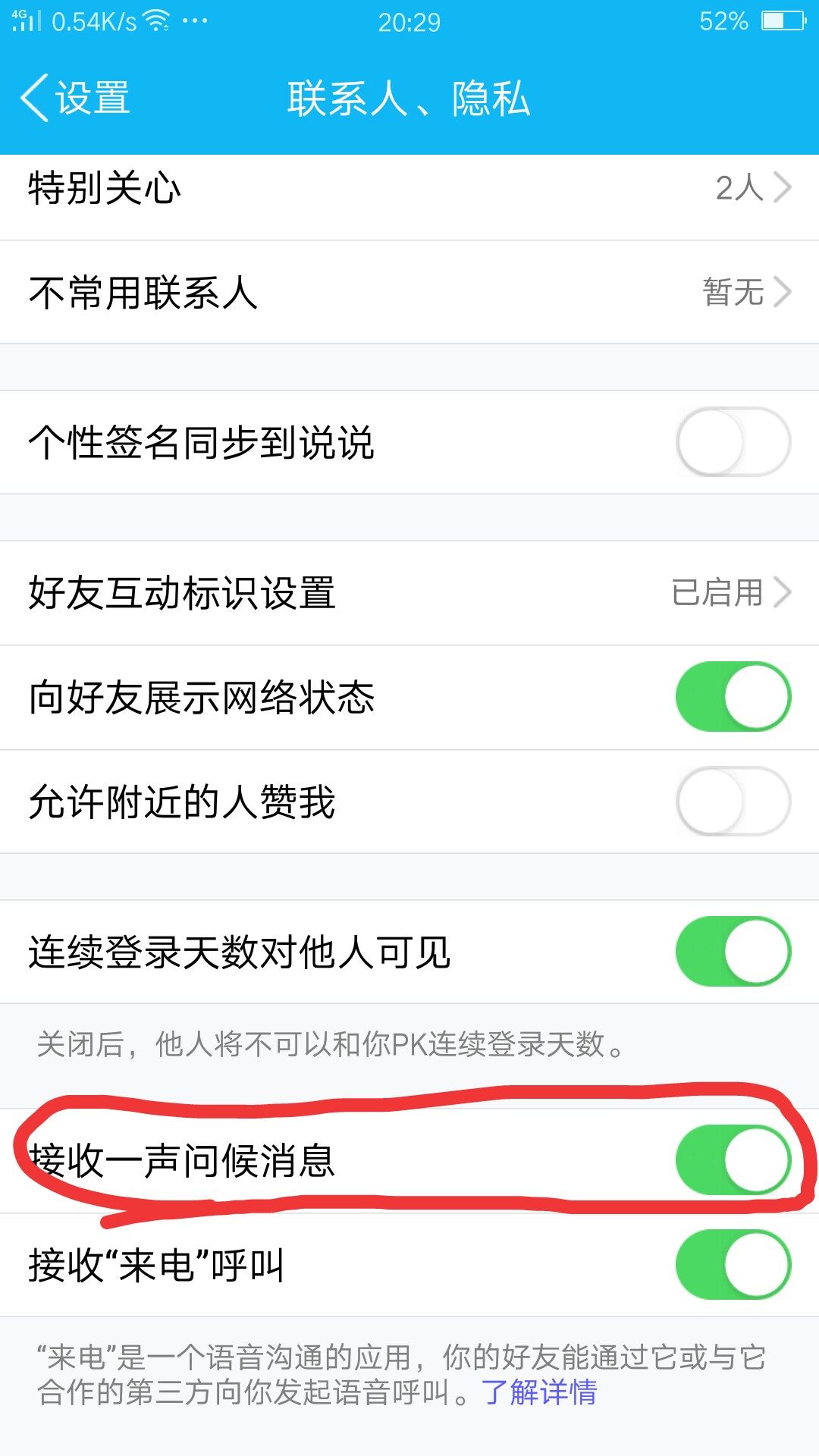 04点击列表下方那个“接收一声问候消息”就可以关闭或者开启自动提醒了。