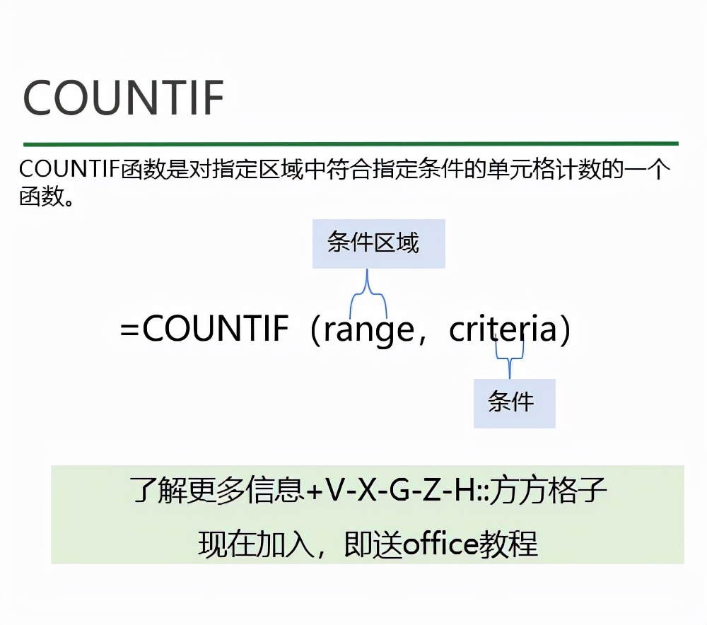 1、COUNTIF函数主要用于对区域中满足单个指定条件的单元格进行计数。它的语法结构是=COUNTIF(统计区域,统计条件)
