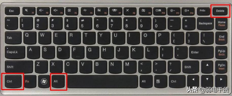 1、出现系统卡死的情况时,有部分电脑系统的Ctrl+Alt+Del组合键,还是可以用的,所以同时按下该组合键