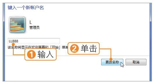 在“用户账户”窗口中单击“更改账户名称”超链接,如下图所示。
