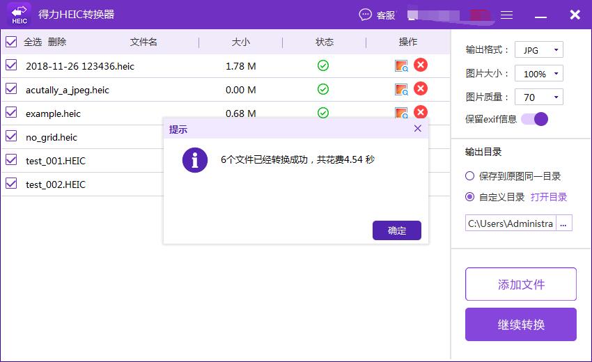 最后,等待片刻,所有图片转换成功后,软件会直接打开输出目录文件夹,这时候我们就可以看到转换后的图片了。返回软件界面我们会发现,软件上弹出一个提示窗口,提示转换几个文件用了多少时间。