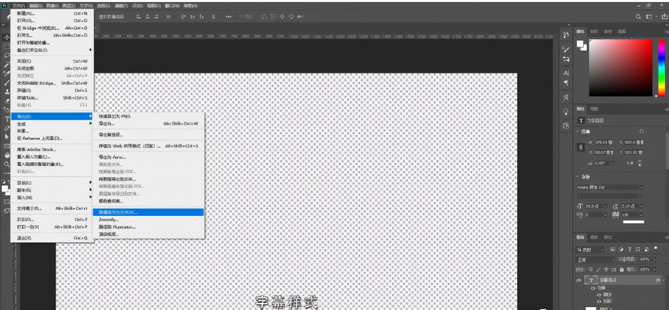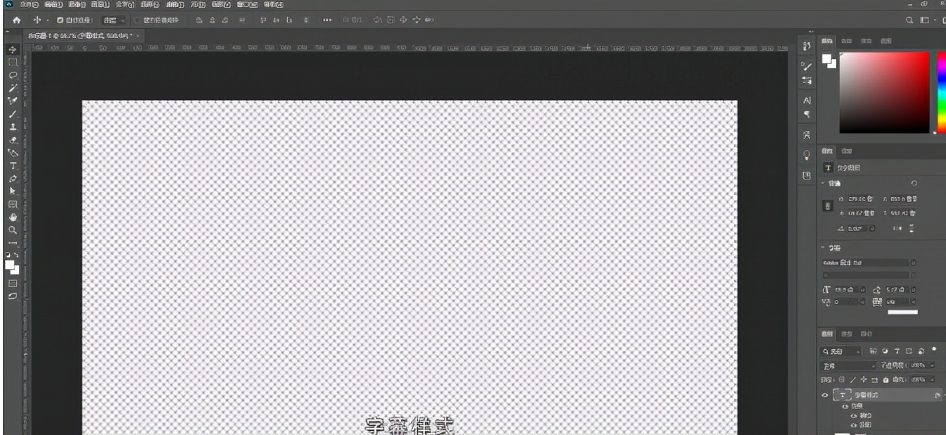 2.然后进入ps里面,创建一个和视频长宽一样,背景为透明的ps文件,再选择右边的文本工具添加字幕文字,文字添加好后,调整大小、颜色、描边等,这个文字样式就是最后显示的字幕文字样式。