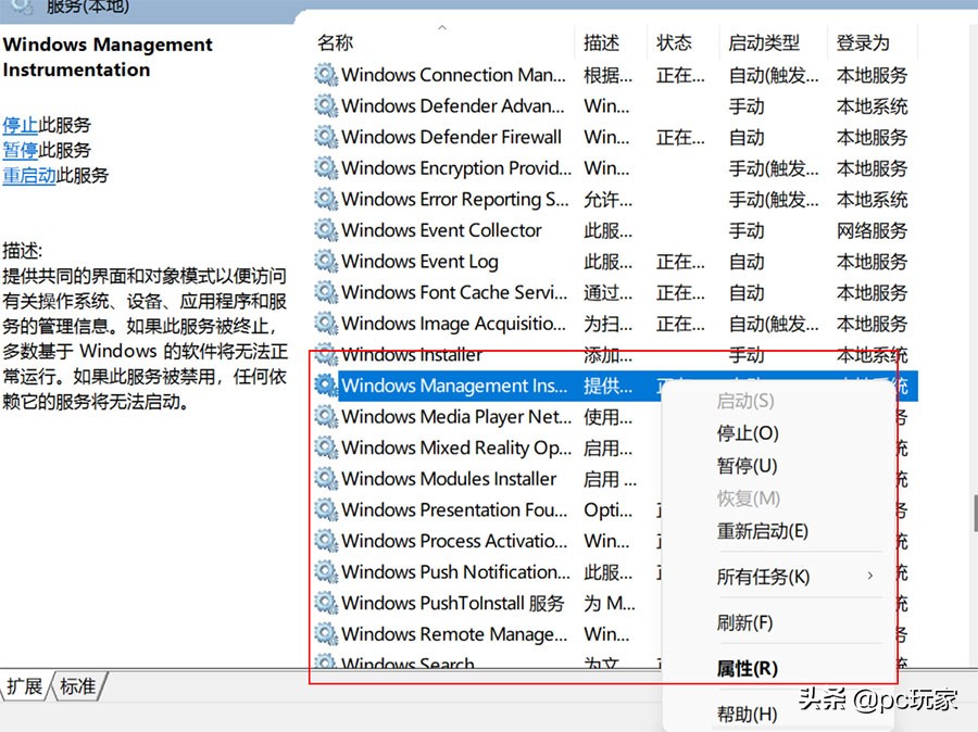 你可以尝试重启WMI服务。点击开始按钮在搜索中输入“服务”,打开匹配到的程序。在服务窗口中向下滚动找到Windows Management Instrumentation,右键单击它,然后单击重新启动。