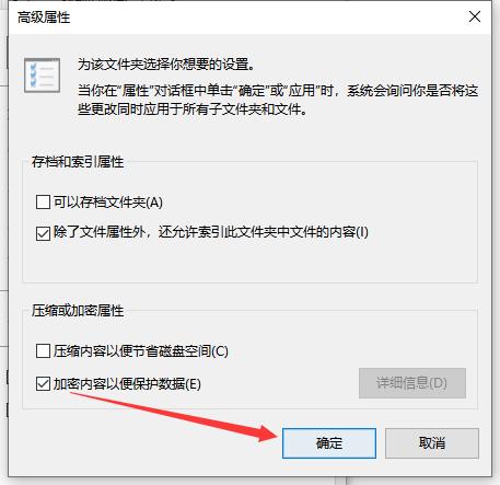 3、在高级属性窗口中,勾选加密内容以便保护数据,然后点击确定就可以了。