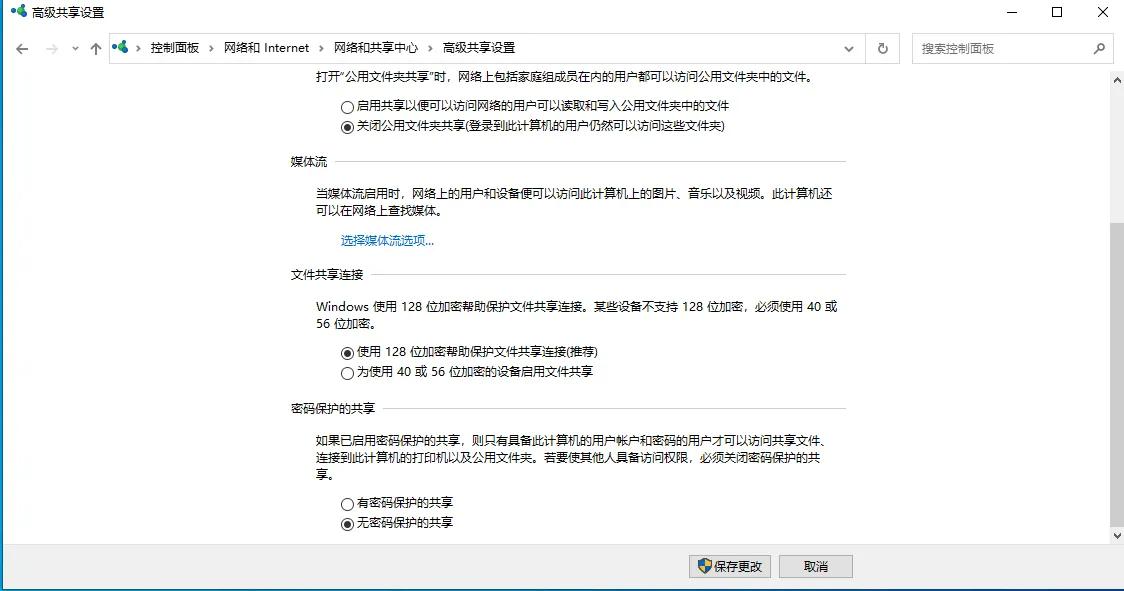 打开控制面板,找到“网络和internet”,然后找到“更改高级共享设置”,看看是否启用了共享那些