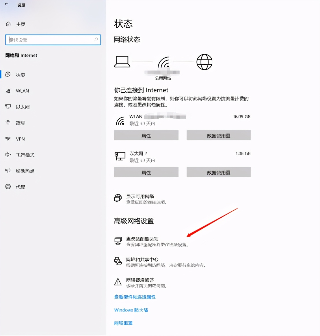 选择“打开“网络和Internet”设置”,点击“更改适配器选项”,然后右键点击“以太网”选择属性,