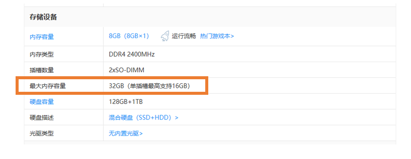 笔记本我们只要在中关村搜索搜索产品型号,在参数中就可以看到我们电脑支持的最大容量,和频率,直接在这个范围内购买就行。
