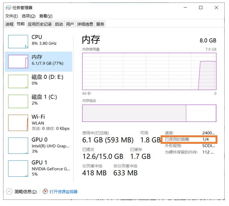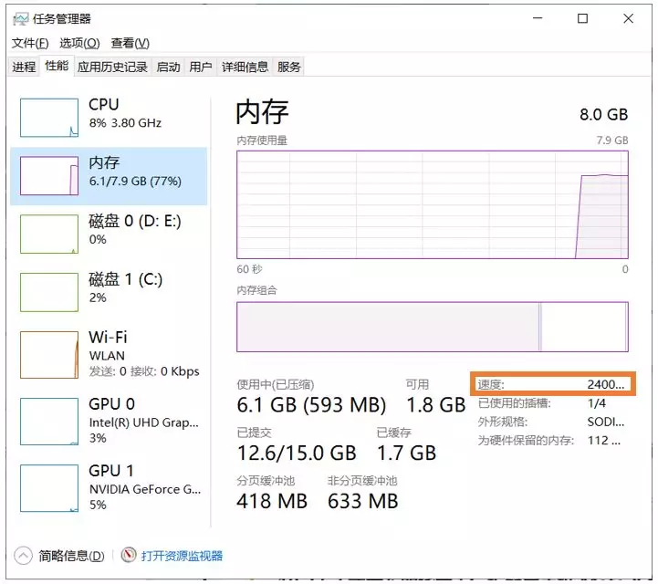 如果我们在运行游戏或使用软件时,内存的占用率超过了70%,那就需要考虑升级内存了。
