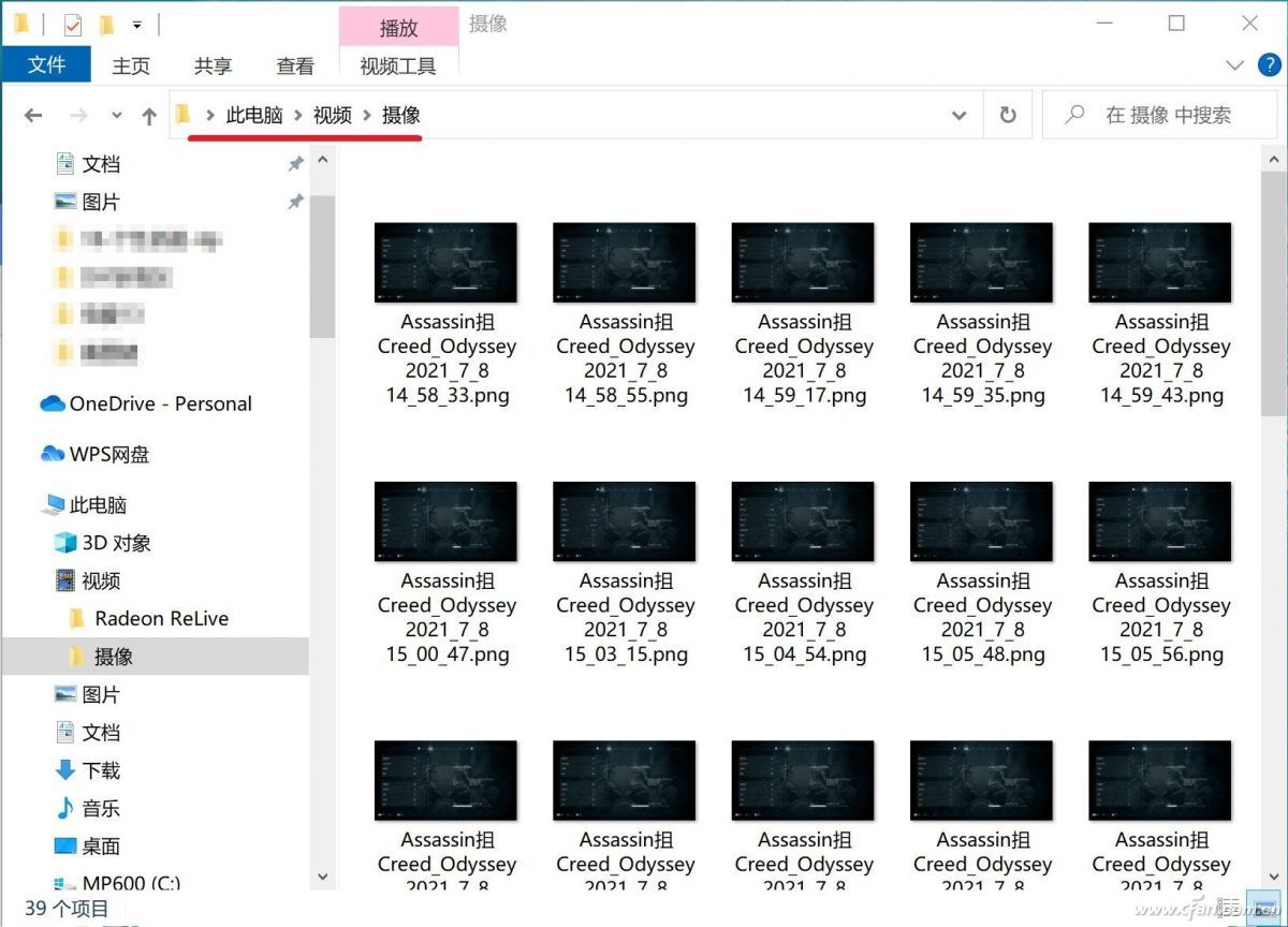 但是,这个快捷键有个奇怪的设置,很多刚开始用的小伙伴可能会蒙圈,那就是它截取的图片默认存储目录是系统的视频/摄像。截图的默认名称是游戏的实际执行文件名+截图的日期时间,因为精确到秒,所以几乎没有重复,识别、管理都特别方便,只是有些时候会因为特殊字符而出现乱码。